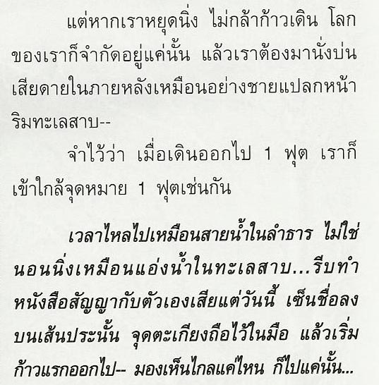 จำไว้ว่า เมื่อเดินออกไป 1 ฟุต เราก็เข้าใกล้จุดหมาย 1 ฟุตเช่นกัน