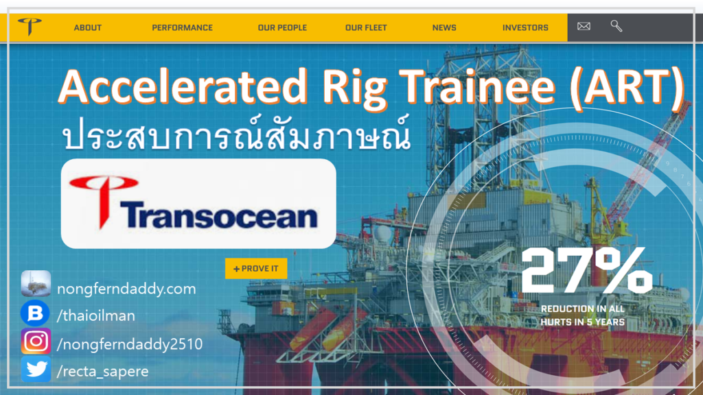 Accelerated Rig Trainee (ART) Transocean ประสบการณ์สัมภาษณ์ – รวมมิตรเลยครับ จากหลายคนหลายรุ่น โปรแกรมนี้ก็คล้ายๆกับ ADP (Accelerated Development Program) ของ ปตท.สผ. Early career development ของ Baker หรือ New Gen ของ Weatherford