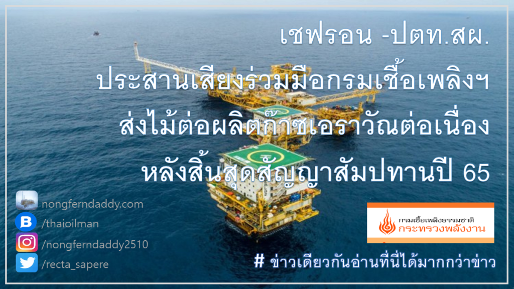 โดยหลังจากที่อธิบดีกรมเชื้อเพลิงธรรมชาติ นายสราวุธ แก้วตาทิพย์ ออกมาให้สัมภาษณ์แสดงความมั่นใจว่ากรมเชื้อเพลิงธรรมชาติจะทำหน้าที่ประสานกับเชฟรอนฯ ซึ่งเป็นผู้รับสัมปทานแหล่งปิโตรเลียมกลุ่มเอราวัณ ที่จะสิ้นสุดสัญญาสัมปทานในวันที่ 23 เม.ย. 2565 กับ ปตท.สผ. ที่จะเป็นโอเปอเรเตอร์มารับช่วงการผลิตต่อภายใต้ระบบแบ่งปันผลผลิตหรือพีเอสซี เพื่อให้การผลิตก๊าซช่วงรอยต่อเกิดความต่อเนื่อง โดยเชื่อมั่นในความเป็นมืออาชีพระดับโลกในอุตสาหกรรมสำรวจและผลิตปิโตรเลียมของเชฟรอน ที่จะช่วยให้การเปลี่ยนผ่านการผลิตครั้งนี้ประสบความสำเร็จตามเป้าหมายนั้น