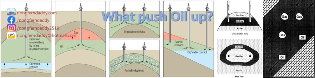 จริงๆมันซับซ้อนกว่านี้ แต่เพื่อความง่ายเอาแค่นี้ก่อน … 2 แรงนี้แหละที่เป็นแหล่งพลังงานสำคัญในการดันน้ำมันขึ้นมาบนผิวโลก