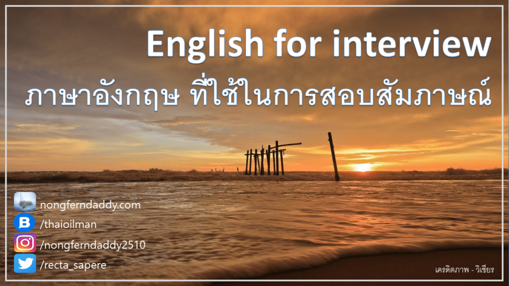 English for interview ภาษาอังกฤษ ที่ใช้ในการสอบสัมภาษณ์ – ก่อนอื่นผมต้องขอออกตัวก่อนว่า ไม่ได้จบเอกอังกฤษ เป็นวิชาที่ไม่ชอบเอามากๆ สมัยโดนบังคับให้เรียน(ตามหลักสูตร) สอบที่แทบจะนิมนต์เจ้าพ่อเจ้าแม่เจ้าป่าเจ้าเขามาช่วย แต่ก็ไม่วายสอบซ่อมเป็นระยะ