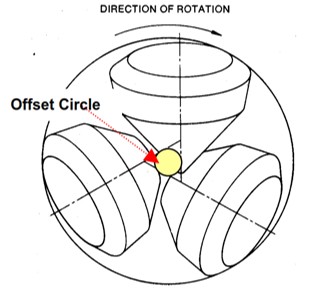 ถ้าไม่เยื้องเลย offset angle = 0 แปลว่า ทุกครั้งที่โดนหมุนแล้ว cutter (ฟัน) หัวเจาะกระทบชั้นหิน มันจะกระทบในแนวดิ่งเป๊ะๆ (crunching/ hammering) เหมือนเราเอาค้อนทุบหินลงไปตรงๆ