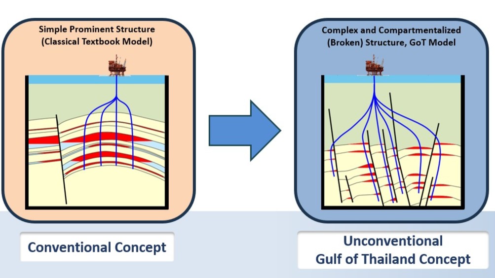พี่ผาพูดว่า - It is not Drilling alone, the evolution fosters cross-functional team collaboration, enabling step change in well design, data acquisition, reservoir management, production optimization and data correlation enhancing infill and step-out well mapping skills for more wells at lower costs, resulted in increasing Recoverable Reserves (1P) and unlocking additional Reserves (2P) in complex structures, regardless of Subsurface Complexity or Uncertainties. Breaking silos across subsurface, drilling, completion and production.