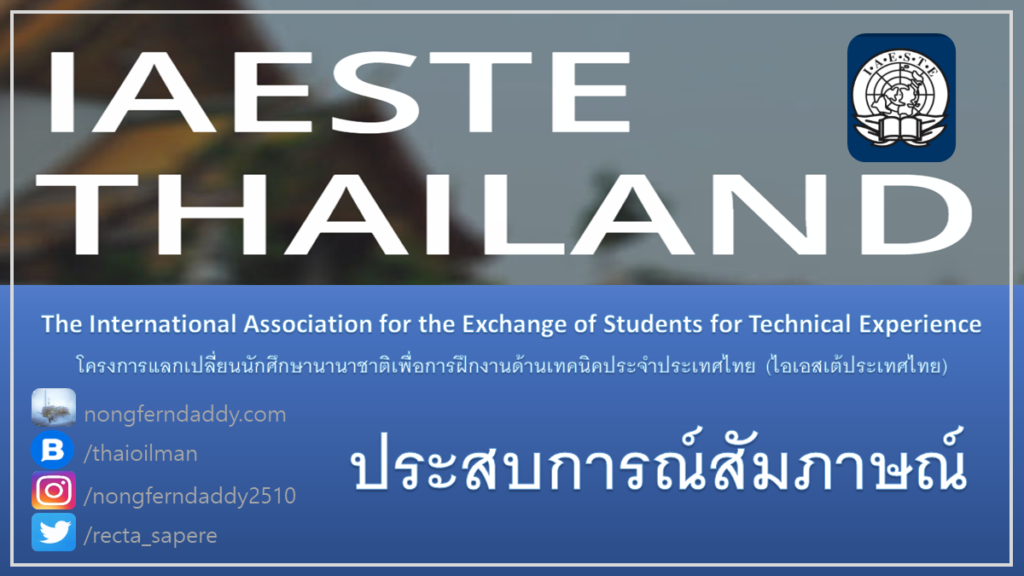 IAESTE interview แลกเปลี่ยนนักศึกษานานาชาติเพื่อการฝึกงาน – เป็นโครงการแลกเปลี่ยนนักศึกษานานาชาติเพื่อการฝึกงานด้านเทคนิค มีน้องคนหนึ่งแบ่งปันประสบการสัมภาษณ์มาเมื่อนานมาแล้วล่ะ แต่ก็น่าจะศึกษาเอาไว้