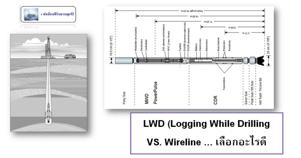 - wireline ต้องเสียเวลาในการเก็บข้อมูลเพิ่ม LWD ชนะขาดเรื่องนี้ เพราะเก็บข้อมูลไปขุดไป เวลาเป็นเงินเป็นทองนะครับ เรานับกันเป็นนาทีเลยทีเดียว