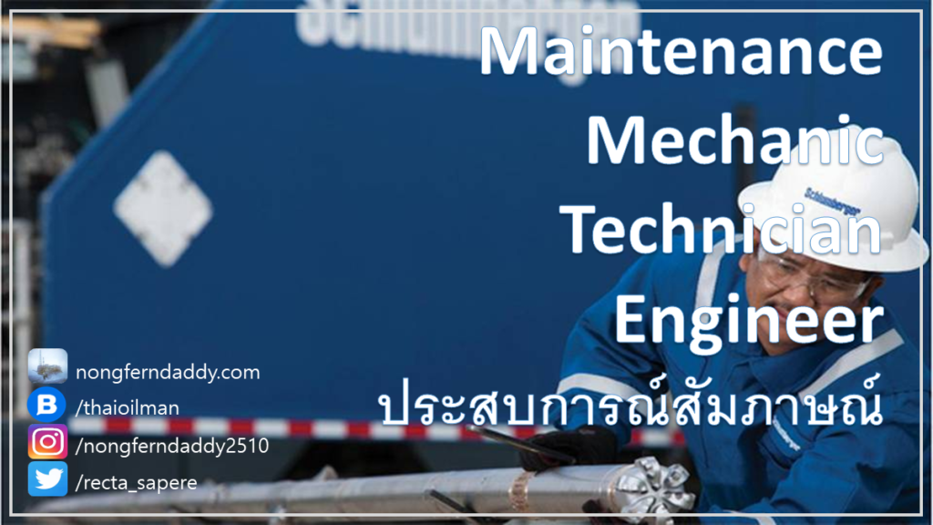 Maintenance Mechanic Tech Eng SLB ประสบการณ์สัมภาษณ์ – รวมมิตร กลุ่มงาน mechanic และ งาน maintenance ครับ งานกลุ่มนี้มีทั้งทำที่ workshop บนฝั่ง และ อออกไปหน้างานเป็นครั้งคราวเวลาของเสีย เป็นอะไรที่ลงตัวสำหรับคนที่ไม่สามารถทิ้งบ้าน ธุรกิจ ร้านรวง หนือ กิ๊ก น้องๆ นศ.ไว้บนฝั่งานๆ 555 🙂