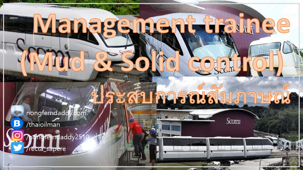 Management trainee Scomi (Mud & Solid control) ประสบการณ์ – บ.นี้มีหลายสินค้าและบริการมากครับ สัญชาติมาเลเซีย แต่ในประเทศไทยก็มีที่หลักเห็นบ่อยๆคือ น้ำโคลน เครื่องแยกเศษหินออกจากน่ำโคลน (solid control) ไปจนถึงบริการกำจัดของเสียที่ได้จาการขุดเจาะ รื้อถอน แบบครบวงจร นอกจากนี้ก็ยังมี machine shop ทำงานเกี่ยวกับตัดเชื้อ เกลียว ตรวจสอบ ท่อต่างๆ