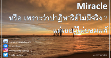 FacebookFacebookXTwitterLINELineMiracle หรือ เพราะว่าปาฏิหาริย์ไม่มีจริง ? แด่เธอผู้ไม่ยอมแพ้ – … สำหรับผม … ปาฏิหาริย์ไม่มีจริง มีแต่ “ศรัทธา” และ … Continue reading Miracle หรือ เพราะว่าปาฏิหาริย์ไม่มีจริง ? แด่เธอผู้ไม่ยอมแพ้