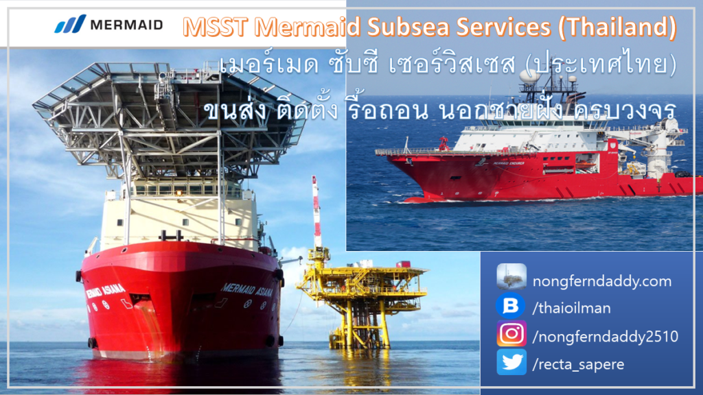 MSST เมอร์เมด ซับซี ขนส่ง ติดตั้ง รื้อถอน นอกชายฝั่ง ครบวงจร – วันนี้ขอเชียร์ บ. service คนไทยที่จะเข้าแข่งขันประมูลงานรื้อถอนแท่นหลุมเจาะนอกชายฝั่งจากเชฟรอน (และเจ้าอื่นที่จะตามมาในอนาคต) หน่อยครับ