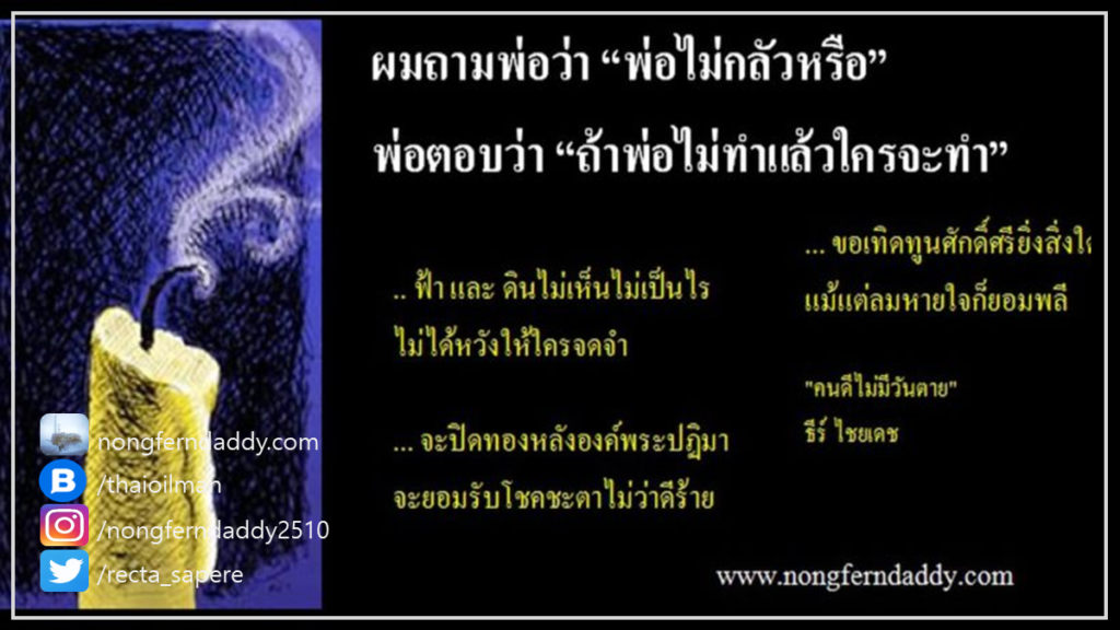 My daddy ผมถาม “พ่อไม่กลัวหรือ” พ่อตอบ “ถ้าพ่อไม่ทำแล้วใครจะทำ” – เนื่องในวันพ่อปีนี้ ขออนุญาติเอาเรื่องนี้มาแบ่งปัน เพื่อรำลึกถึงคนๆหนึ่ง คนที่ทำให้พวกเรามีเว็บไซด์นี้ได้อ่าน ได้หาความรู้กัน