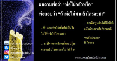 FacebookFacebookXTwitterLINELineMy daddy ผมถาม “พ่อไม่กลัวหรือ” พ่อตอบ “ถ้าพ่อไม่ทำแล้วใครจะทำ” – เนื่องในวันพ่อปีนี้ ขออนุญาติเอาเรื่องนี้มาแบ่งปัน เพื่อรำลึกถึงคนๆหนึ่ง คนที่ทำให้พวกเรามีเว็บไซด์นี้ได้อ่าน ได้หาความรู้กัน … Continue reading My daddy ผมถาม “พ่อไม่กลัวหรือ” พ่อตอบ “ถ้าพ่อไม่ทำแล้วใครจะทำ”