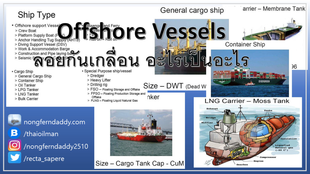 Offshore Vessels ลอยกันเกลื่อนอ่าวไทยเยอะแยะ มันคืออะไรกันบ้าง – ได้สำเนาข้อมูลเกี่ยวกับประเภทและการใช้งานเรือ (Vessel) ประเภทต่างๆในการปฏิบัติงานสำรวจและผลิตปิโตรเลียมนอกชายฝั่งอ่าวไทย (Gulf of Thailand Offshore Exploration and Production)