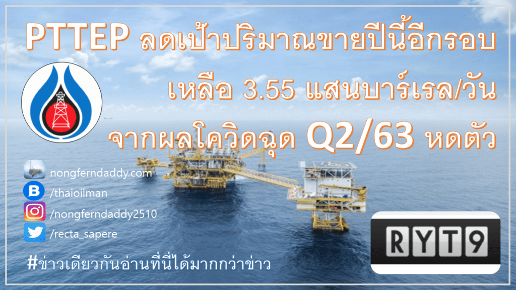 PTTEP ลดเป้าปริมาณขายปีนี้อีกรอบเหลือ 3.55 แสนบาร์เรล/วันจากผลโควิดฉุด Q2/63 หดตัว