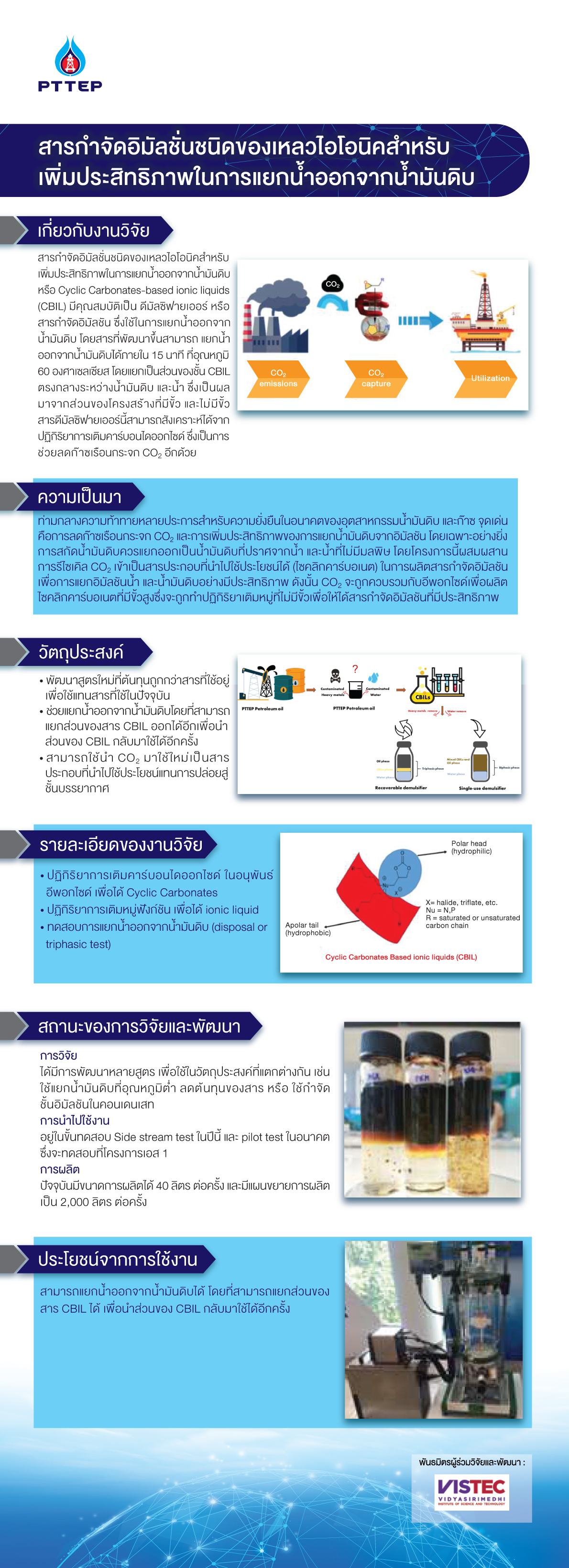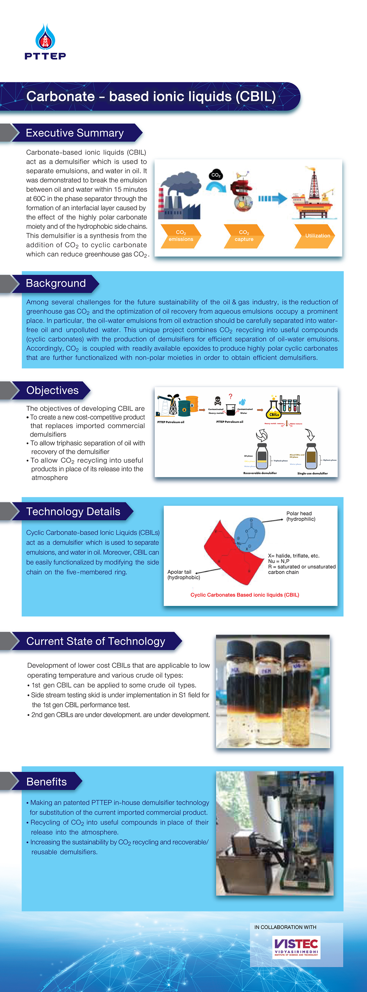 CARBONATE-BASED IONIC LIQUIDS (CBIL) CHEMICAL DEMULSIFIER คือ demulsifier ที่พี่ใหญ่เราพัฒนาขึ้นมาใช้เอง
