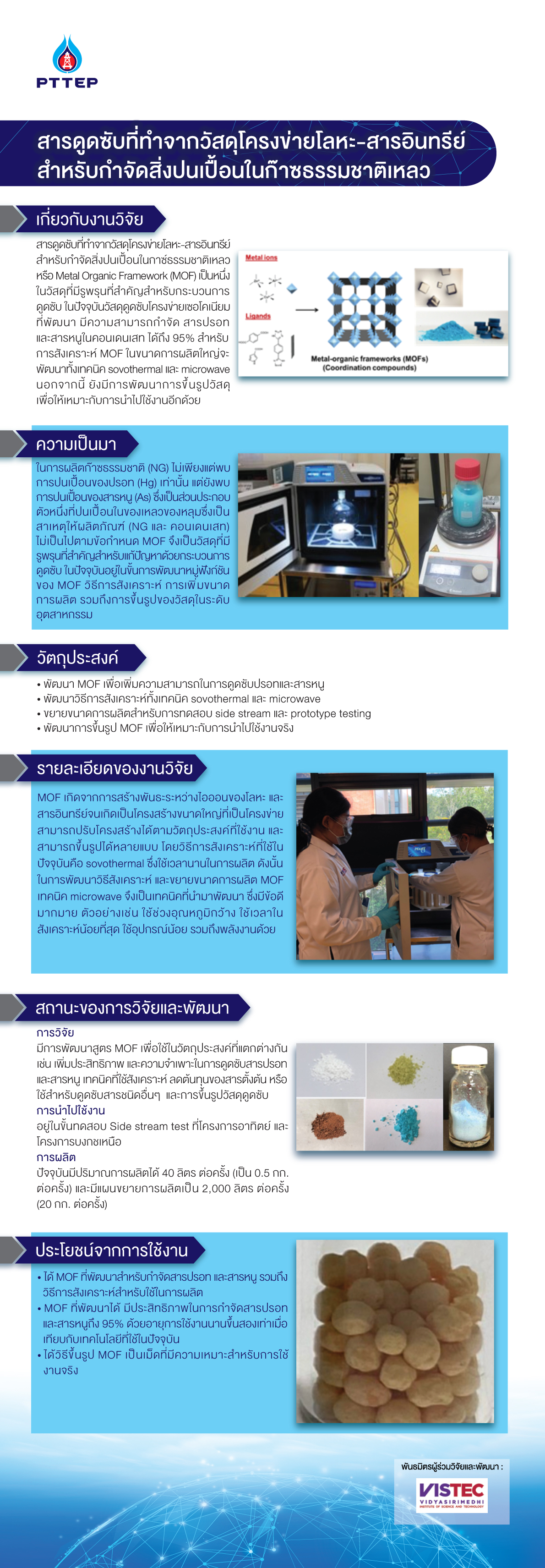 สารดูดซับที่ทำจากวัสดุโครงข่ายโลหะ-สารอินทรีย์สำหรับกำจัดสิ่งปนเปื้อนในก๊าซธรรมชาติเหลว