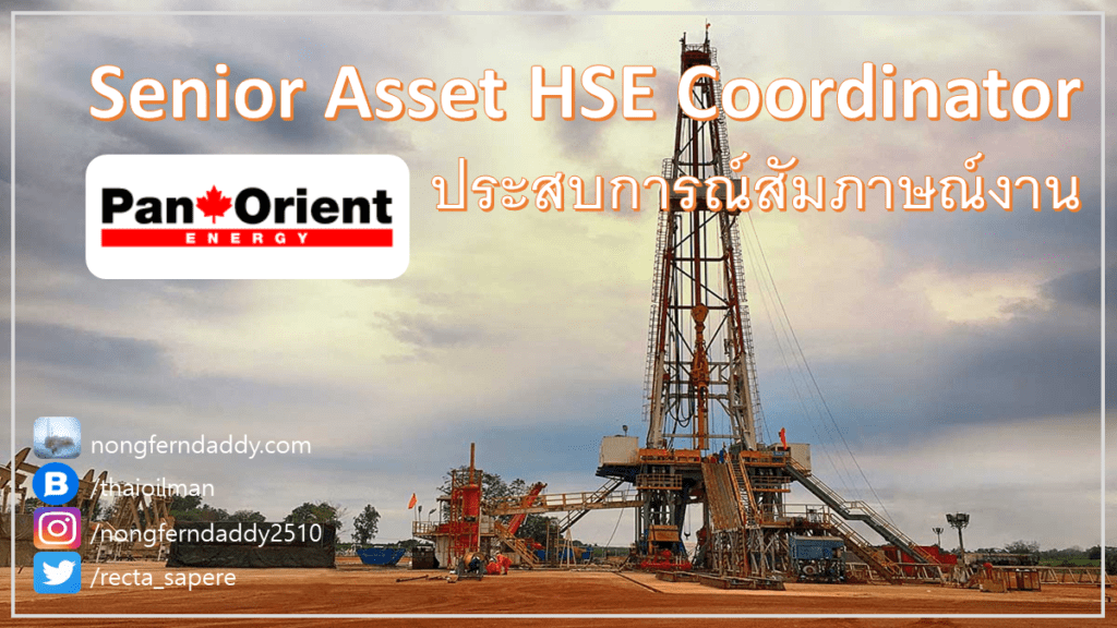 Senior Asset HSE Coordinator – Pan Orient Energy สัมภาษณ์งาน – บ.นี้เป็นบ.น้ำมันขนาดเล็กๆ ได้รับสัมปทาน ทำมาหากินอยู่บนบก แถวๆวิเชียรบุรี นครปฐามฯ โซนๆนั้น