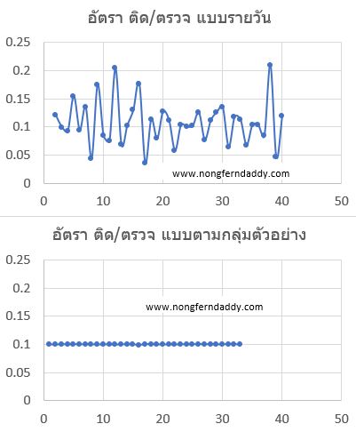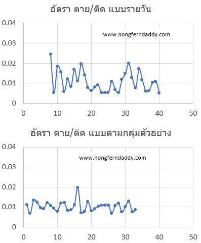 รูปบน อัตราการ ตาย/ติด แกว่งไปมา จนน่าตกใจ (หรือ น่าสบายใจ) แบบรายวัน