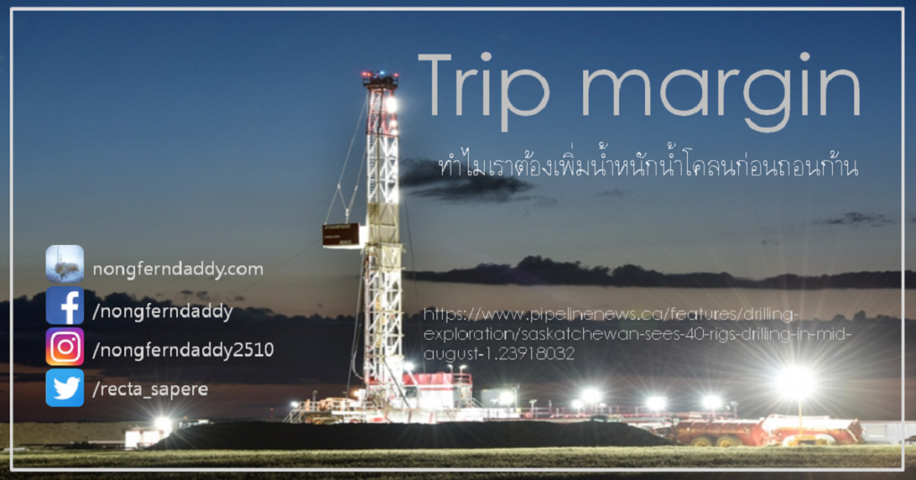 Trip margin – ทำไมเราต้องเพิ่มน้ำหนักน้ำโคลนก่อนถอนก้าน … เราชาวขุดเจาะเคยสังเกตุกันไหมครับ ถอนก้านทีไร company man สั่งวิศวกรน้ำโคลนเพิ่มน้ำหนักน้ำโคลนนิดหน่อยทุกที