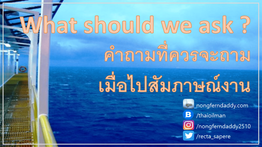 What should we ask ? คำถามที่ควรจะถามเมื่อไปสัมภาษณ์งาน – บล๊อกก่อนหน้า ผมพูดถึงคำถามและการตอบคำถามเมื่อโดนสัมภาษณ์งานวิศวกรสนาม