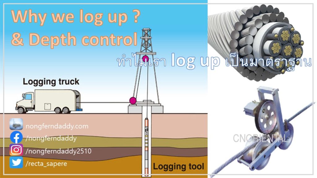 ในการหยั่งธรณีโดยใช้สายเคเบิ้ลเนี้ย ปกติเราจะบันทึกข้อมูลที่อ่านจากเครื่องมือ ขณะที่เราสาวสายเคเบิ้ลขึ้น เราเรียกว่า log up กันเป็นมาตราฐาน ทั้งๆที่เราสามารถบันทึกข้อมูลฯในขณะที่เราหย่อนเครื่องมือลงหลุม (log down) ก็ได้เช่นกัน